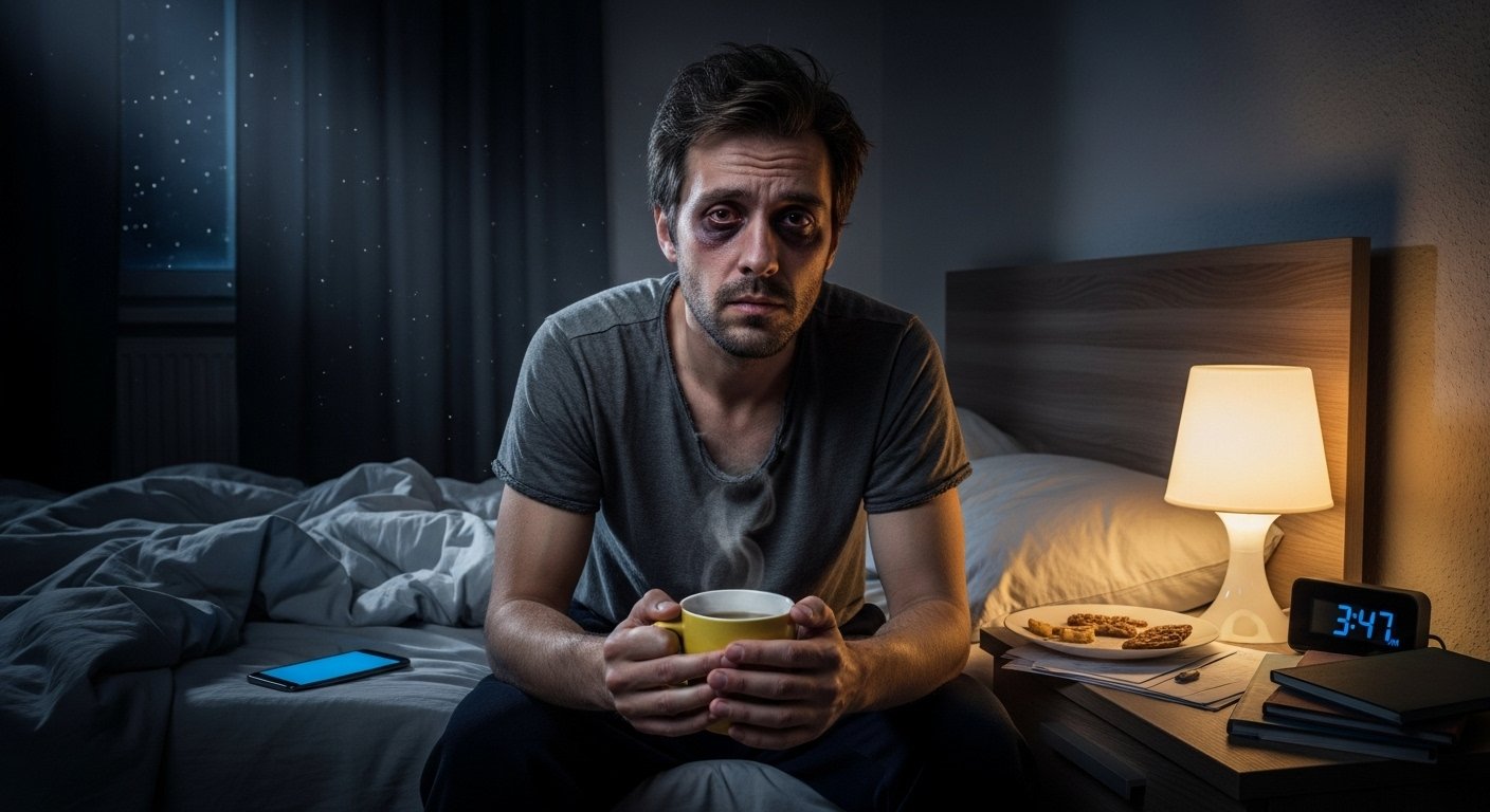 Even that “harmless” afternoon coffee can cause anxiety-related insomnia hours later.